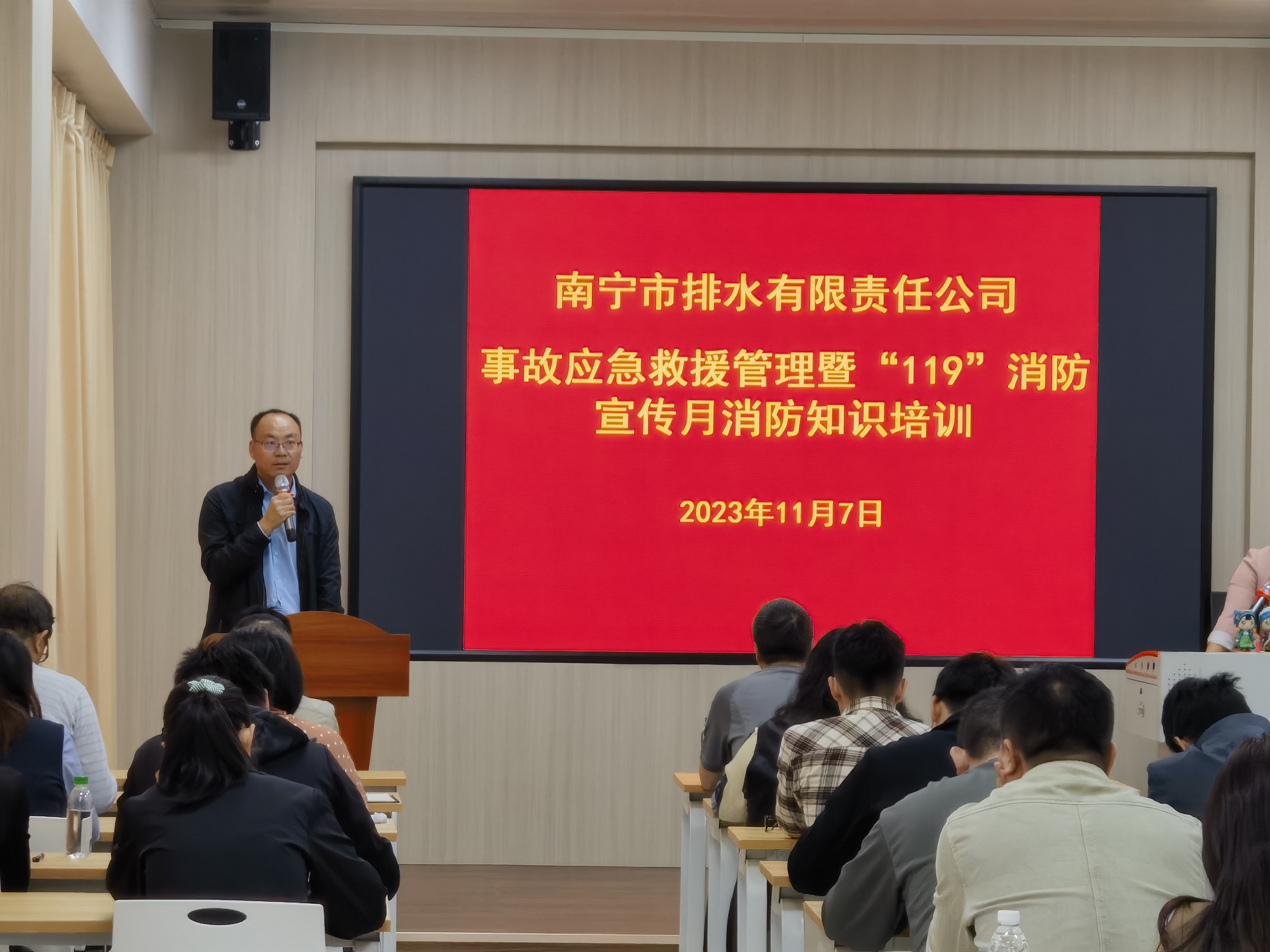 為進一步推進公司應急能力體系建設,強化員工安全消防責任意識,提升自防自救能力,11月7日,市排水公司在市國資委新時代文明實踐中心(集團公司新時代文明實踐所)舉辦了2023年事故應急救援管理暨“119”消防宣傳月消防知識培訓班,公司應急隊伍及部分2021年、2022年入職員工共62人參加培訓。