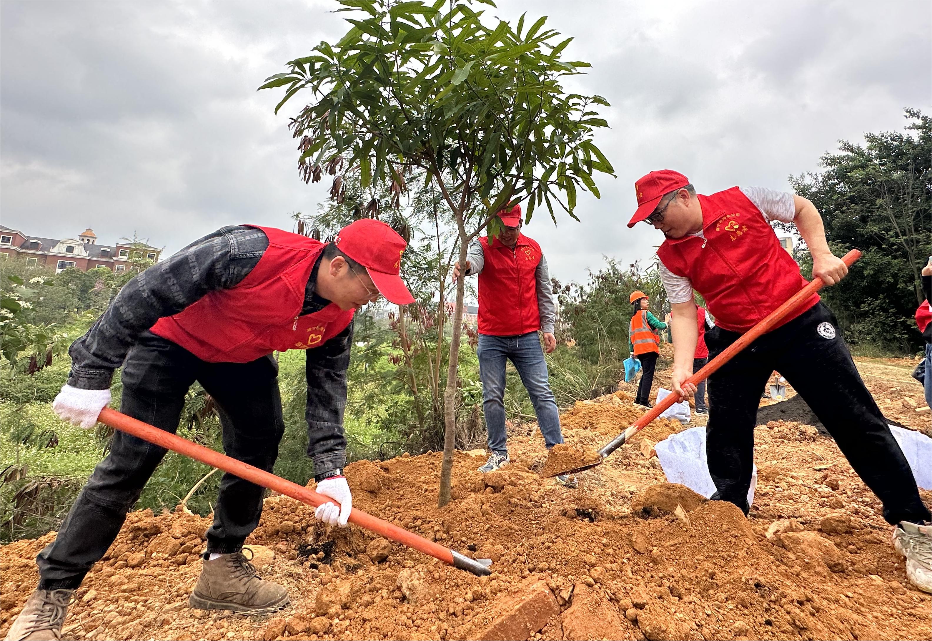 風(fēng)和日暖,萬物生長(zhǎng),正是植樹添綠好時(shí)節(jié)。在邕江上游引水工程一期工程-可心江原水專線工程項(xiàng)目現(xiàn)場(chǎng),志愿者們熱情高漲,按照專業(yè)人員講解的植樹要領(lǐng)進(jìn)行分工協(xié)作。土壤殺菌、扶正樹苗、挖土填埋、澆水灌溉……各個(gè)環(huán)節(jié)銜接有序、配合默契,現(xiàn)場(chǎng)一派熱鬧的勞動(dòng)場(chǎng)面。經(jīng)過大家的辛勤耕作,成功種下10棵扁桃樹苗。一棵棵小樹迎風(fēng)而立,為春天增添了盎然生機(jī),也播種下一份份綠色的希望。