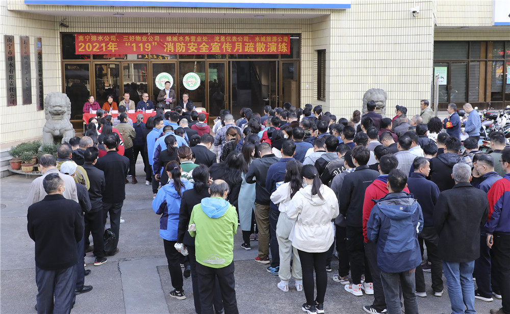 11月23日下午4時(shí),在南寧市江南區(qū)體育路4號(hào)辦公樓,隨著集團(tuán)公司副總經(jīng)理、排水公司董事長(zhǎng)周柏建的一聲“開(kāi)始”,2021年“119”消防安全宣傳月火災(zāi)疏散應(yīng)急演練活動(dòng)正式拉開(kāi)序幕。
