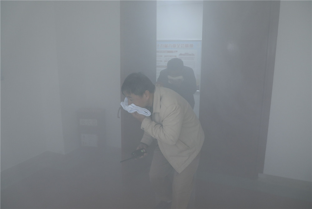 煙霧在樓層中彌漫開(kāi)來(lái),空氣里傳來(lái)濃烈刺鼻的氣味,在人工煙霧制造的“著火現(xiàn)場(chǎng)”背景下,大家按照緊急疏散的程序和要求,遵循“左手用毛巾捂住鼻子、嘴巴,右手扶著墻壁走”的規(guī)范姿勢(shì),在安全疏導(dǎo)員的指揮下有條不紊地從安全通道撤離,各單位員工一個(gè)不少的有序集中在辦公大樓前的安全地帶。整個(gè)演練活動(dòng)達(dá)到了預(yù)期效果,取得了圓滿(mǎn)成功。