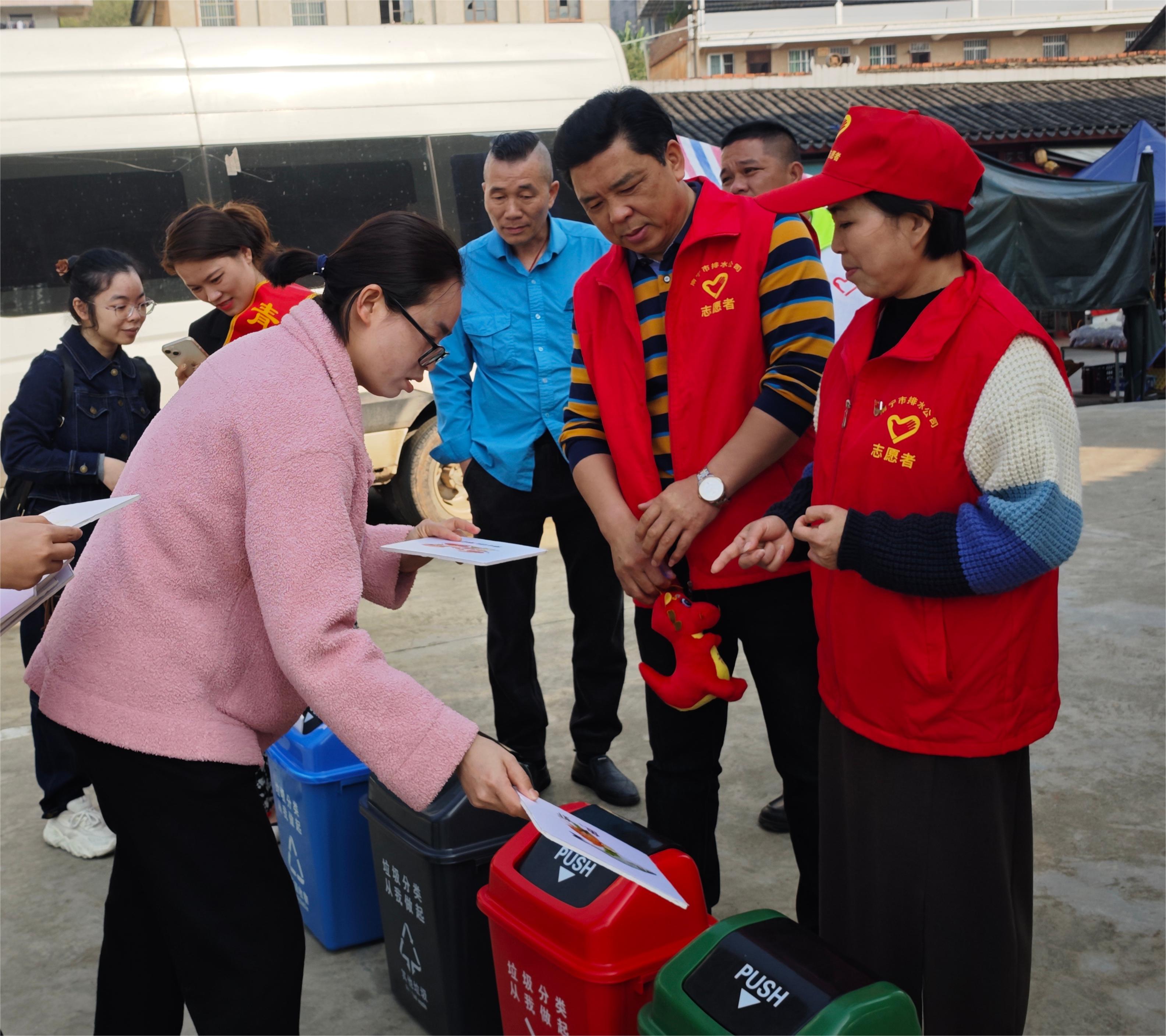 活動(dòng)還開(kāi)展了垃圾分類(lèi)趣味游戲,社區(qū)居民需要將手中的“垃圾”投入到正確的垃圾桶內(nèi),全部投放正確即可獲得小禮品,以寓教于樂(lè)的形式,增強(qiáng)了社區(qū)居民對(duì)生活垃圾分類(lèi)知識(shí)的了解。同時(shí),志愿者們還通過(guò)發(fā)放宣傳資料、宣傳講解等方式,向社區(qū)居民宣傳民族團(tuán)結(jié)、防詐騙知識(shí)、禁毒知識(shí)、法律知識(shí)等內(nèi)容。